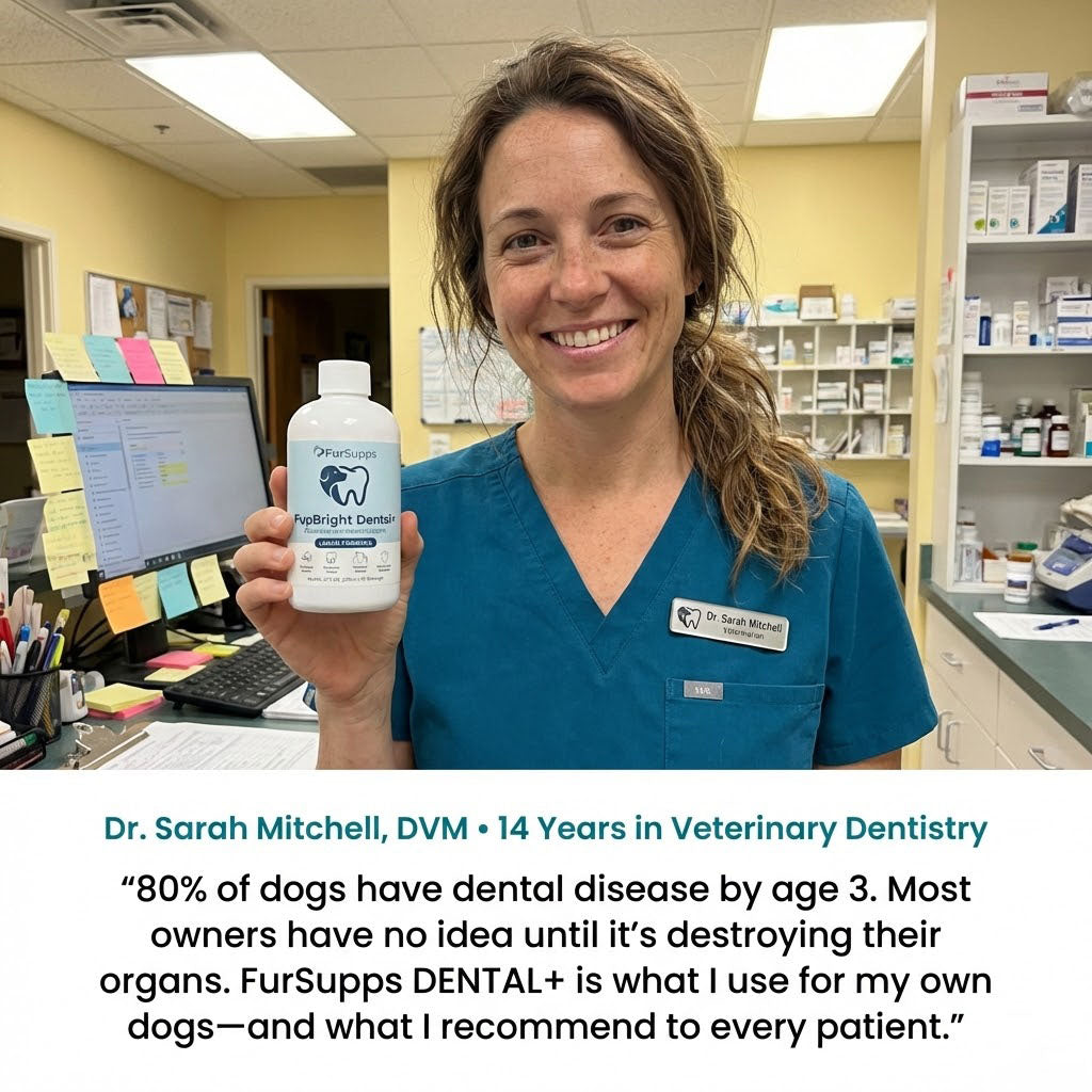 "80% of my patients have preventable dental disease. FurSupps PupBright is what I wish every dog parent started using at age 1. It would put me out of business."